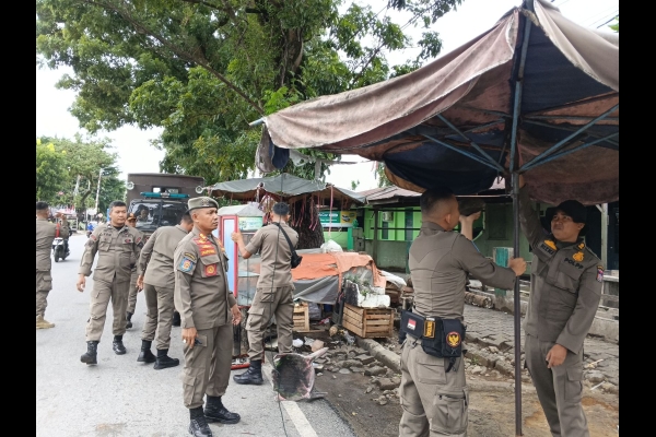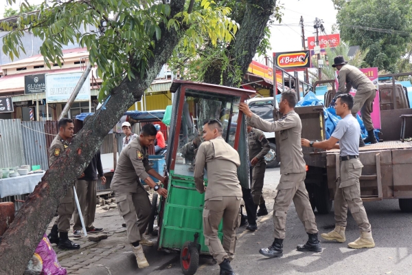 Satpol PP Padang Tertibkan PKL yang Berjualan di Sepanjang Trotoar Jalan Jhoni Anwar