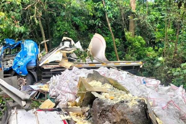 Rem Blong di Tahura Bung Hatta, Truk Ayam Beku Terbalik Tiga Kali Usai Hantam Motor
