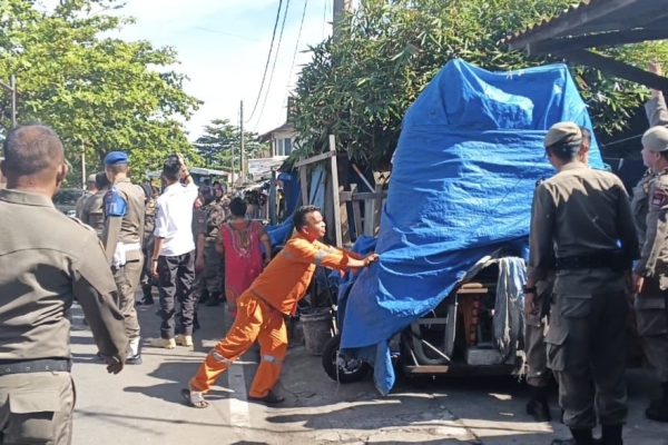 Satpol PP Bongkar Lapak Dagang yang Ditinggalkan Pemiliknya di Sepanjang Pantai Padang