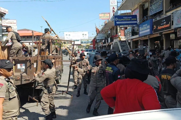 Sasar Selasar Barat Pasar Raya, Satpol PP Padang Tertibkan Lapak PKL Nakal