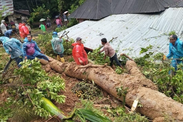 Dua Pohon Tumbang Disertai Longsor, Akses Jalan Warga di Lubuk Minturun Sungai Lareh Terhambat