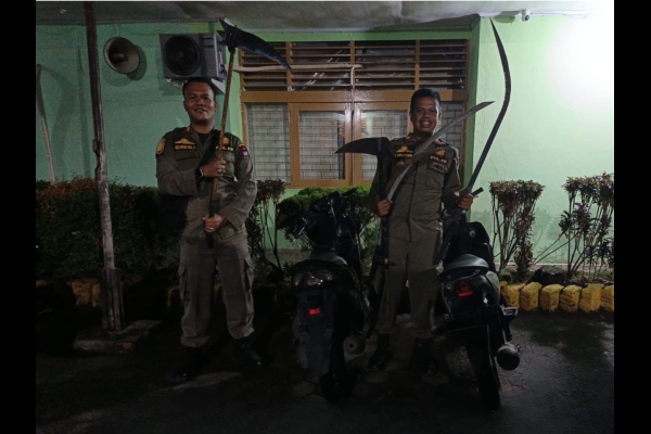 Tim Gabungan Satpol PP Padang Amankan 7 Sajam dan 2 Sepeda Motor Saat Patroli di Kawasan Pauh