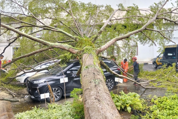 Pohon Tumbang Timpa Dua Mobil di Parkiran Hotel Mercure Padang, Kerugian Rp60 Juta