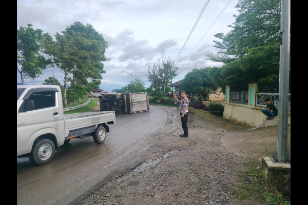 Mobil Box Terbalik di Jalur Solok-Padang, Lalu Lintas Sempat Diberlakukan Buka Tutup