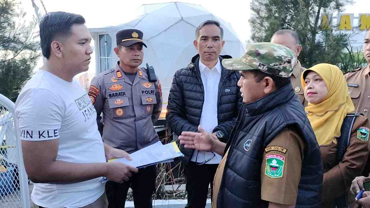 ALAHAN PANJANG - Pemerintah Kabupaten Solok menjatuhkan sanksi administratif penghentian sementara kegiatan kepada PT Lakeside Alahan Wisata, pengelola kawasan wisata glamping yang berlokasi di Jorong Galagah, Nagari Alahan Panjang, Kecamatan Lembah Gumanti, Selasa, 14 Oktober 2025.
