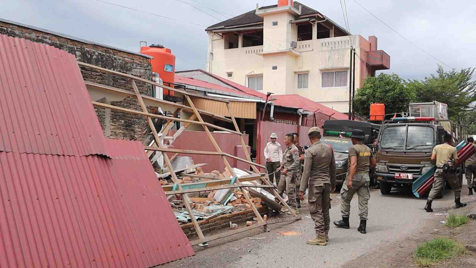 PADANG - Satuan Polisi Pamong Praja (Satpol PP) Kota Padang membongkar bangunan liar (bangli) yang didirikan di atas badan jalan di Jalan Belibis, Kelurahan Air Tawar Barat, Jumat, 24 Oktober 2025.