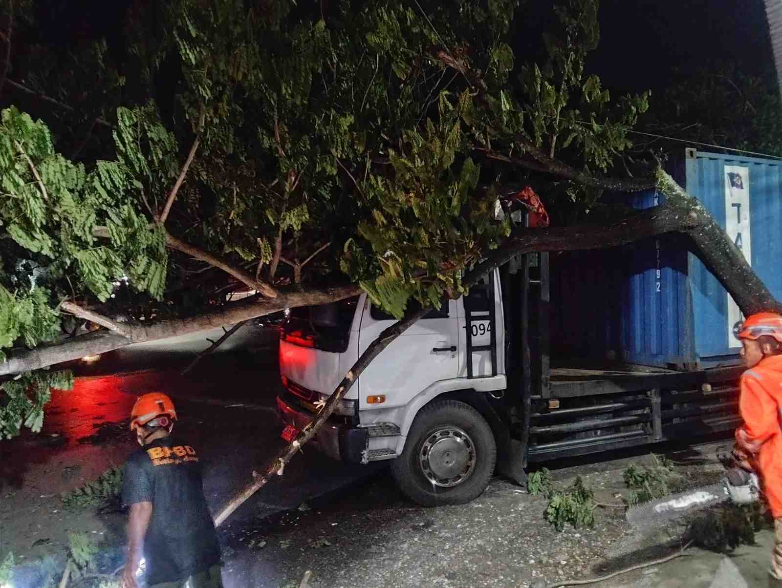 PADANG – Sebuah kecelakaan tunggal yang melibatkan truk kontainer menyebabkan pohon berjenis trambesi tumbang dan menutup akses Jalan By Pass Pengambiran, Kilometer 2, Kelurahan Pengambiran, Kecamatan Lubuk Begalung Nan XX, Jumat, 24 Oktober 2025 malam.