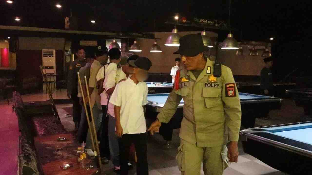 PADANG - Satuan Polisi Pamong Praja (Satpol PP) BKO Kecamatan Pauh, Kota Padang mengamankan puluhan pelajar yang kedapatan membolos saat jam pelajaran, Jumat, 21 November 2025. Mereka didapati sedang asik bermain biliar di lokasi tersebut, bahkan ada yang membawa senjata tajam (sajam)