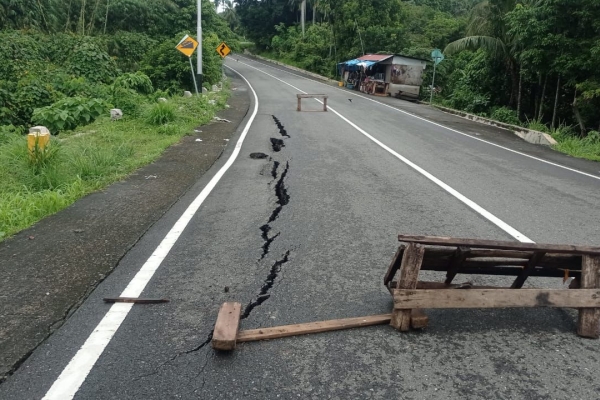 Jalan di Teluk Bayur pantai air manis Retak Sepanjang 50 Meter, Akses Lalu Lintas Terputus