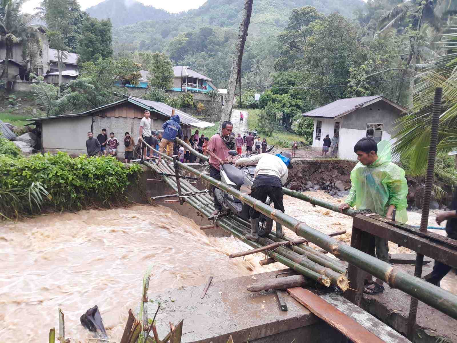 Proses pembangunan jembatan darurat dengan memanfaatkan bambu masih berlangsung. Jembatan darurat ini diharapkan dapat digunakan untuk sementara waktu sambil menunggu pembangunan jembatan yang permanen.