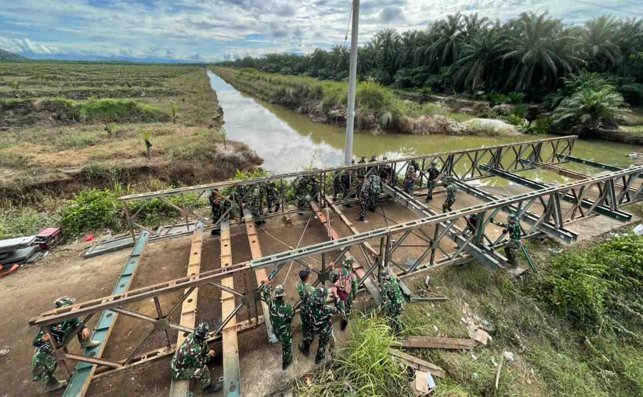 Menindaklanjuti instruksi tersebut, Kodam XX/Tuanku Imam Bonjol (TIB) mengerahkan personel terbaiknya untuk membangun empat jembatan Bailey di titik-titik strategis yang menjadi akses utama masyarakat, Rabu, 10 Desember 2025.