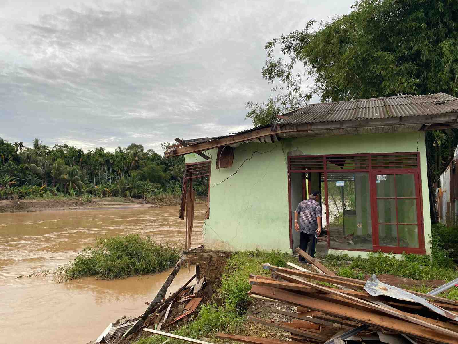 PADANG PARIAMAN - Sedikitnya tujuh rumah warga di Korong 1 Komplek Palapa Saiyo, Jorong Sungaibuluh Selatan, Kecamatan Batang Anai, Kabupaten Padangpariaman, ambruk setelah diterjang aliran Batang Anai yang meluap.