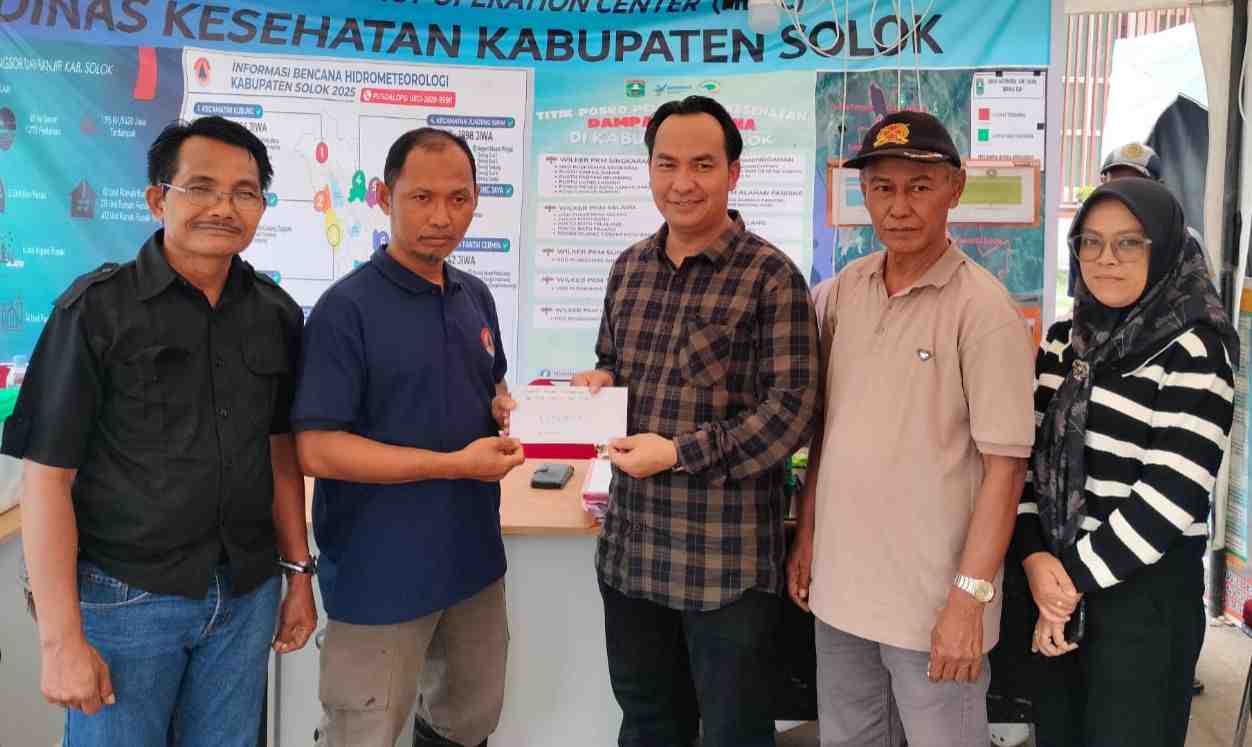 KABUPATEN SOLOK - Pelaksana Tugas (Plt) Kepala Dinas Komunikasi dan Informatika (Kominfo) Kabupaten Solok, Syafriwal, menyalurkan bantuan berupa uang tunai untuk korban bencana di Kabupaten Solok, melalui Posko Utama Penanganan Bencana, Koto Baru, Kecamatan Kubung, Sabtu, 13 Desember 2025.