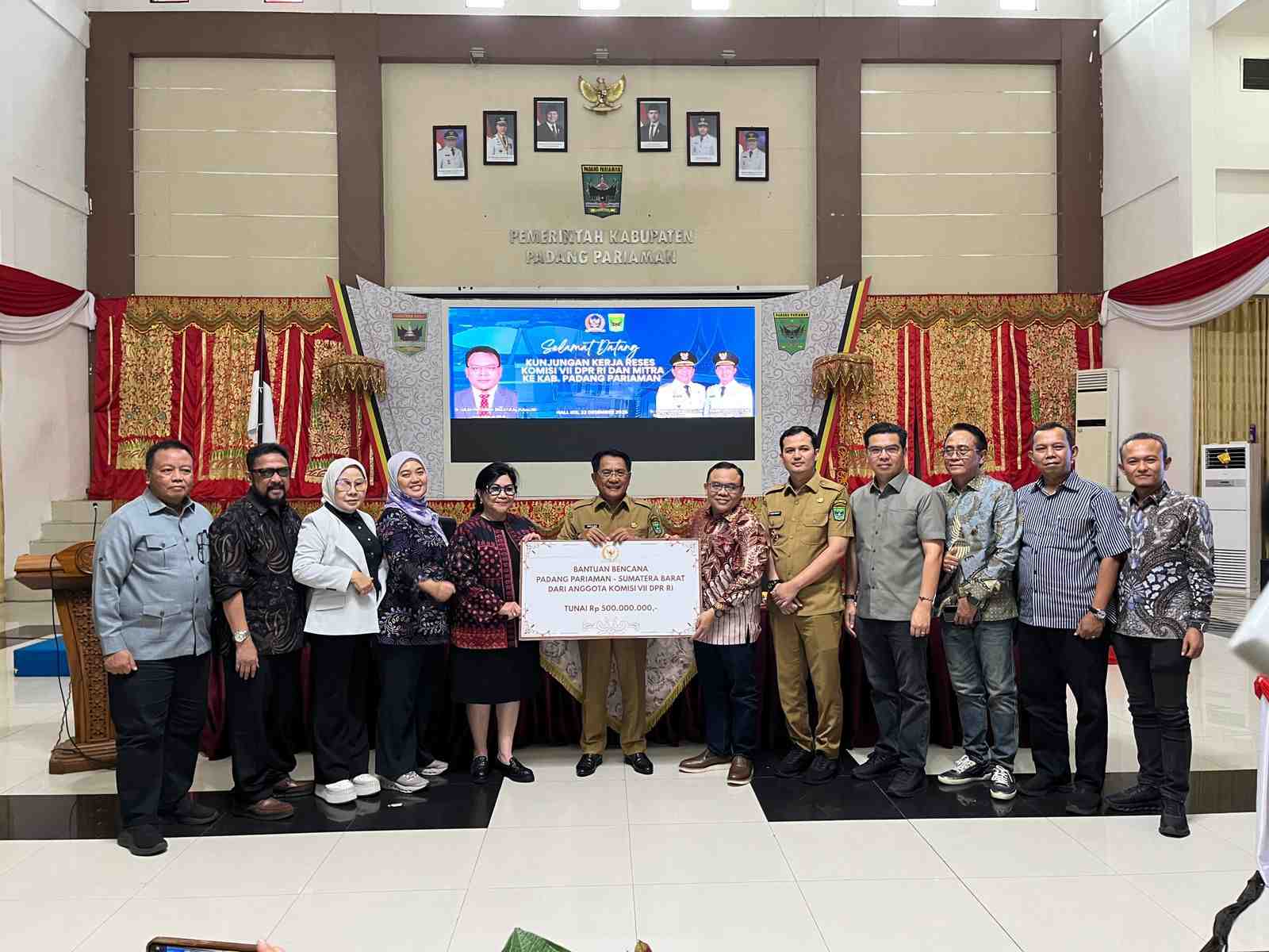 PADANG PARIAMAN – Komisi VII DPR RI menyerahkan bantuan modal usaha senilai Rp500 juta bagi pelaku Usaha Mikro, Kecil, dan Menengah (UMKM) yang terdampak bencana di Kabupaten Padang Pariaman.