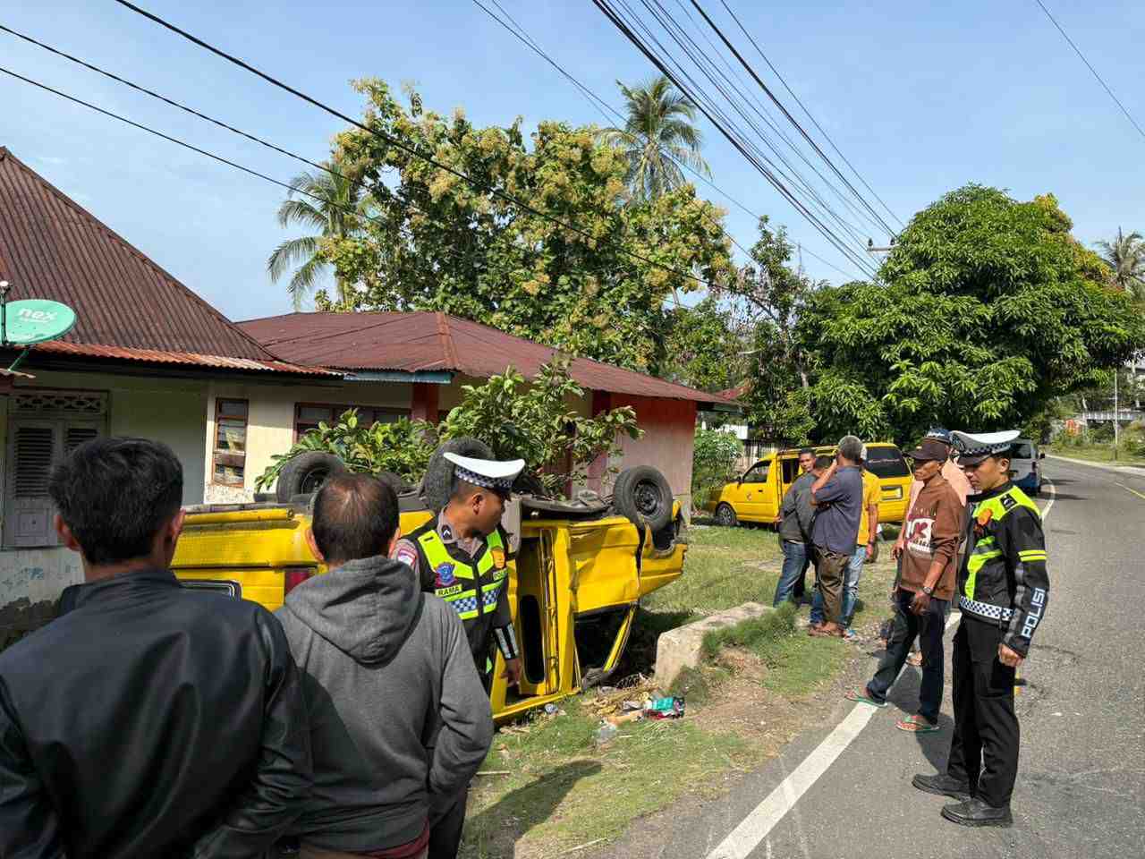 Pecah Ban, Angkot yang Membawa 13 Pelajar Terbalik di Simawang Tanah Datar