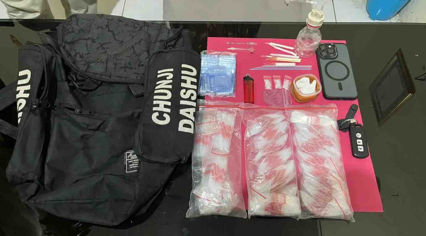 Dalam penggeledahan tersebut, polisi menemukan barang bukti yang disembunyikan di bawah jok sepeda motor Honda ADV milik tersangka. Barang bukti yang disita meliputi!3 paket sabu seberat 1,11 gram dalam kotak kecil, satu unit timbangan digital mini dan plastik klip bening, alat hisap (bong), kaca pirek sisa pakai, dan sedotan runcing serta satu unit iPhone 13 Pro.