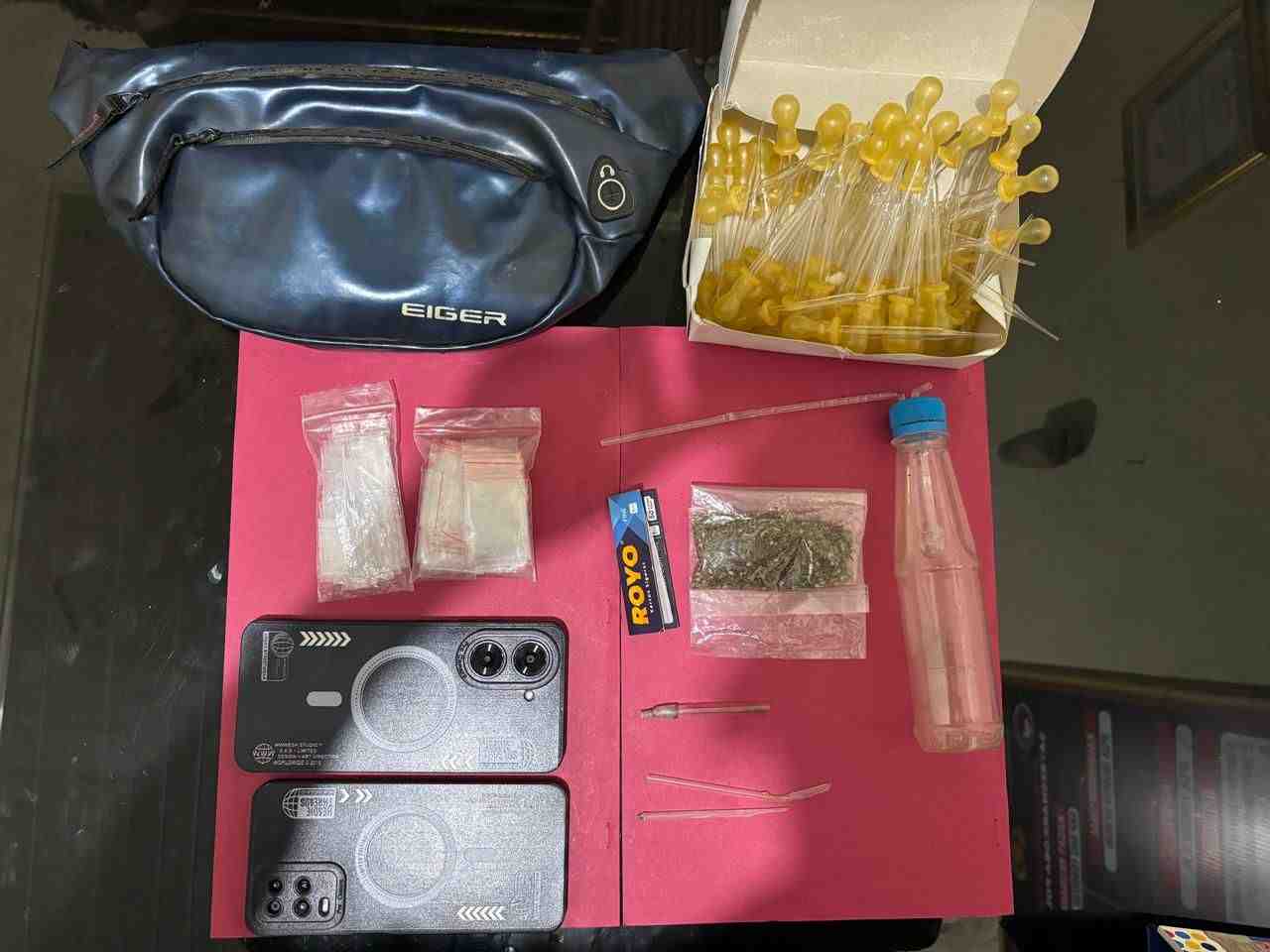 Dalam penggeledahan yang disaksikan oleh Kepala Jorong setempat dan tokoh masyarakat, polisi menemukan sejumlah barang bukti yang memperkuat dugaan tindak pidana tersebut, di antaranya satu paket narkotika jenis ganja, satu buah kaca pirek berisi sisa sabu, satu set alat hisap (bong) dan plastik klip bening serta dua unit ponsel yang diduga digunakan untuk transaksi.