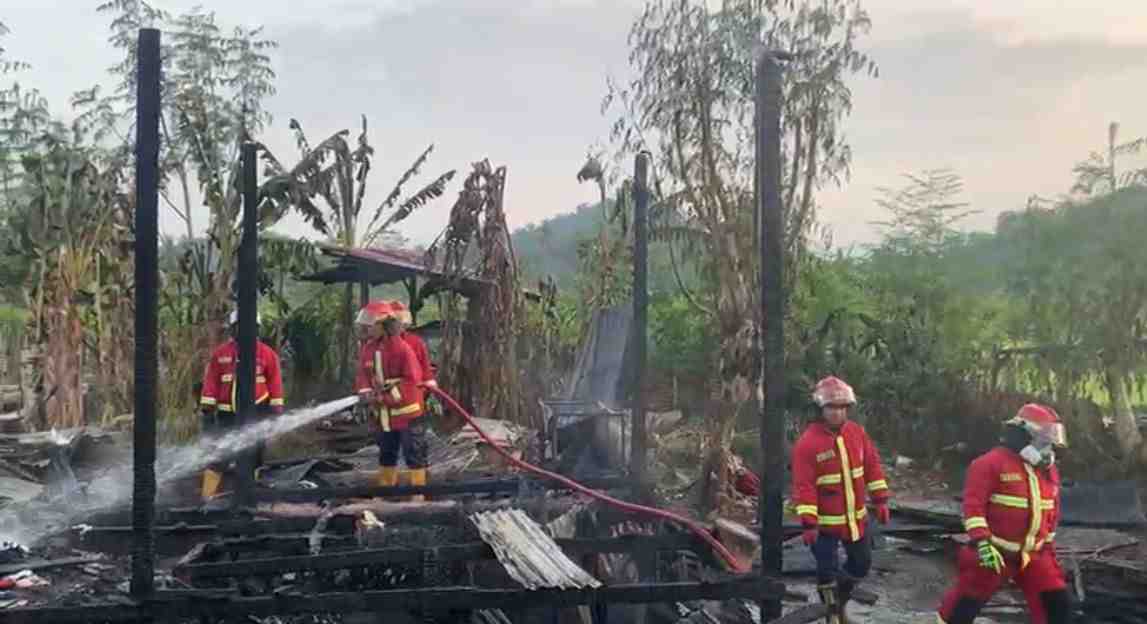 Api dilaporkan menghanguskan satu unit rumah permanen, warung P&D, serta satu unit mobil Suzuki Escudo dengan total kerugian ditaksir mencapai Rp500 juta.