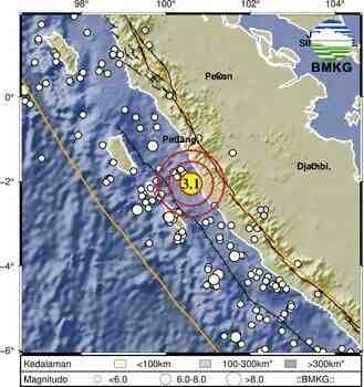 Gempa Magnitudo 3,1 Guncang Pesisir Selatan Malam Ini