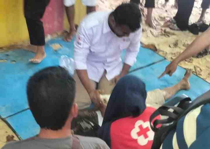 Setibanya di dermaga Pulau Angso Duo, tim Palang Merah Indonesia (PMI) yang sedang bersiaga dalam rangka pengamanan libur Lebaran Idulfitri 1447 H langsung melakukan tindakan darurat.
