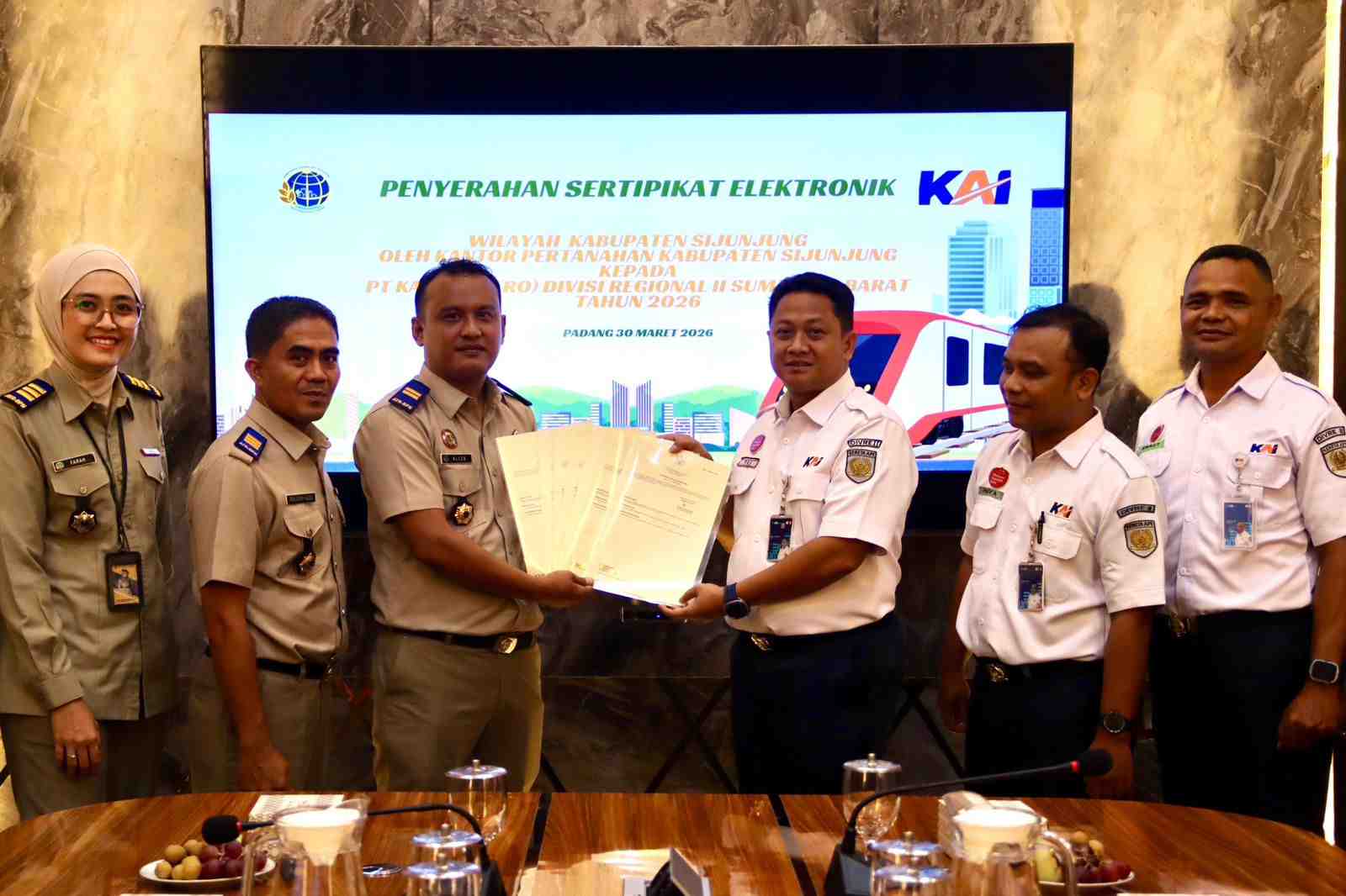 Upaya Selamatkan Aset Negara, KAI Divre II Sumbar Terima e-Sertipikat dari BPN Kabupaten Sijunjung