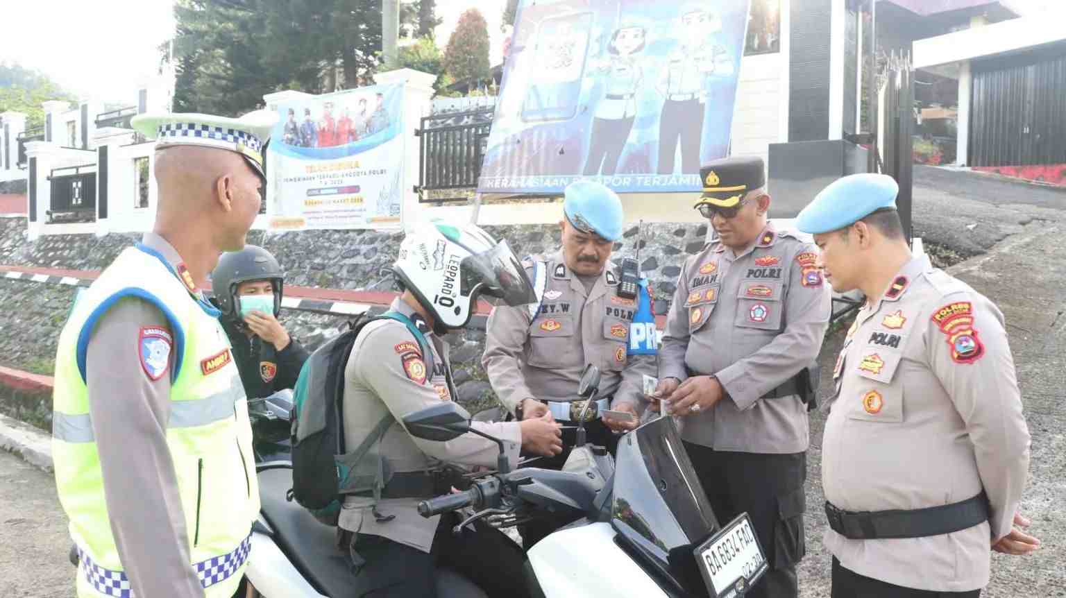 TANAH DATAR - Polres Tanah Datar menggelar razia kelengkapan berkendara di depan Markas Komando (Mako) Polres Tanah Datar pada Rabu, 8 April 2026. Pemeriksaan ini tidak hanya menyasar masyarakat umum, tetapi juga menyisir kedisiplinan internal anggota kepolisian yang hendak bertugas.