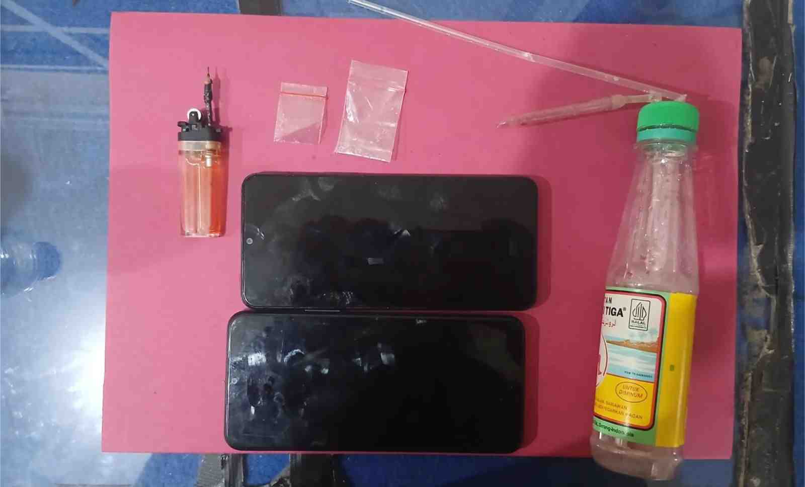 Dari tangan RA, petugas menyita sejumlah barang bukti berupa 6 paket plastik klip bening berisi kristal diduga sabu, 1 set alat hisap (bong) yang dirangkai dari botol minuman, korek api modifikasi, unit ponsel, dan uang tunai.