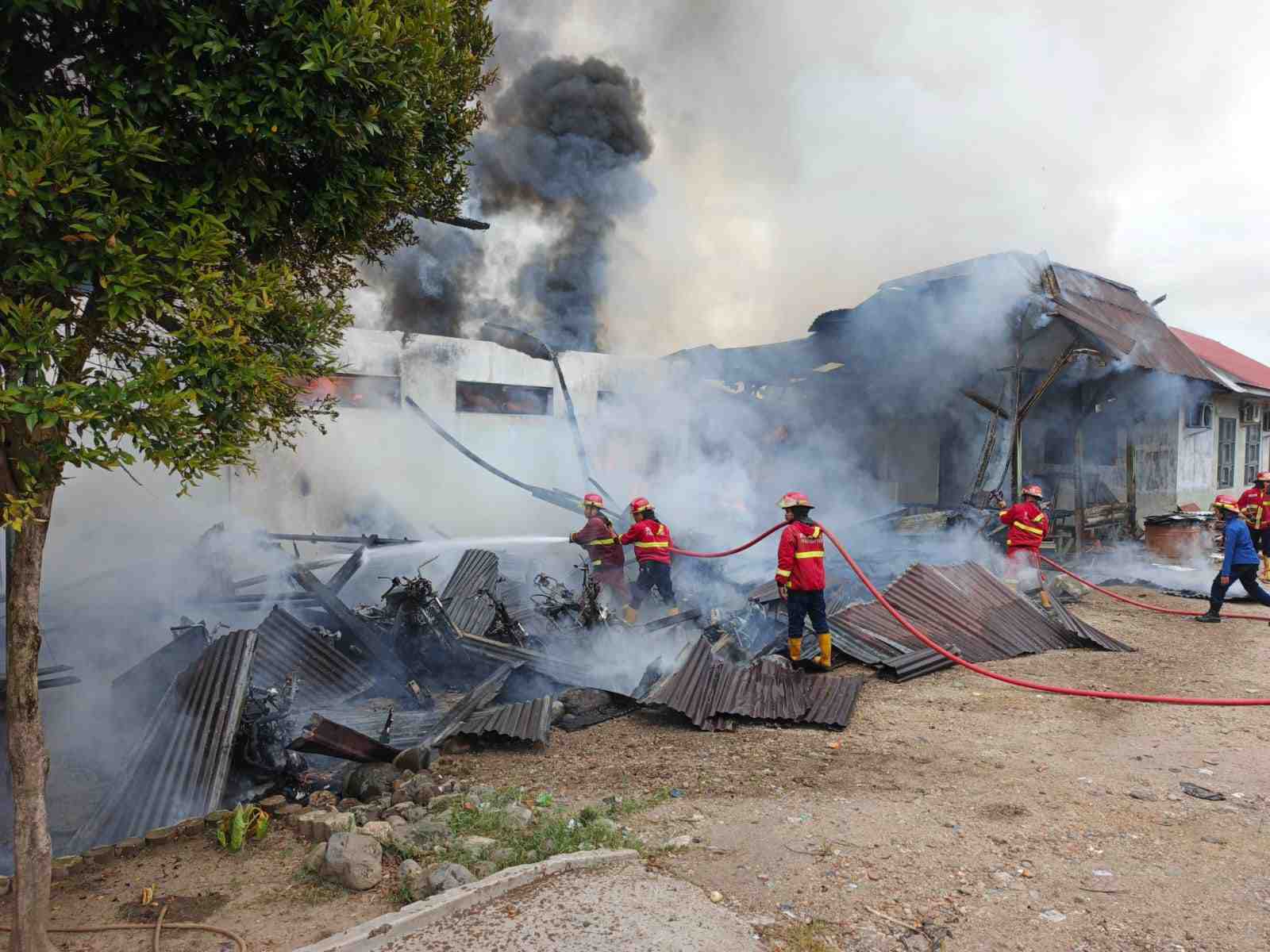 “Objek yang terbakar meliputi satu gudang barang, satu area kantin, dan satu hanggar. Luas area yang terdampak mencapai kurang lebih 350 meter persegi. Selain bangunan, ada sekitar 23 unit sepeda motor yang ikut hangus terbakar di lokasi," tambahnya.