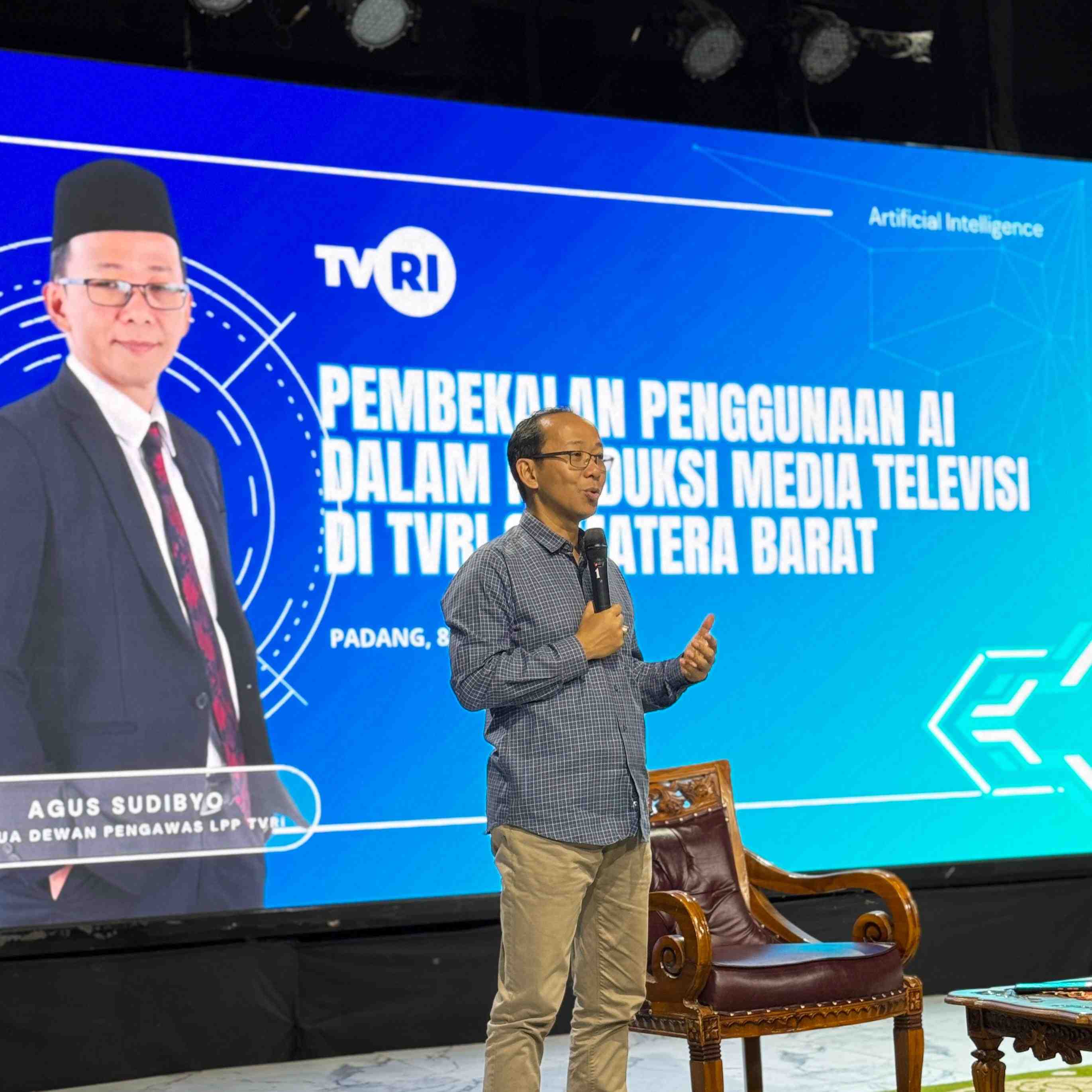 Ketua Dewan Pengawas LPP TVRI, Agus Sudibyo hadir di TVRI Sumatera Barat untuk memberikan materi mengenai perkembangan dan pemanfaatan AI dalam dunia penyiaran.